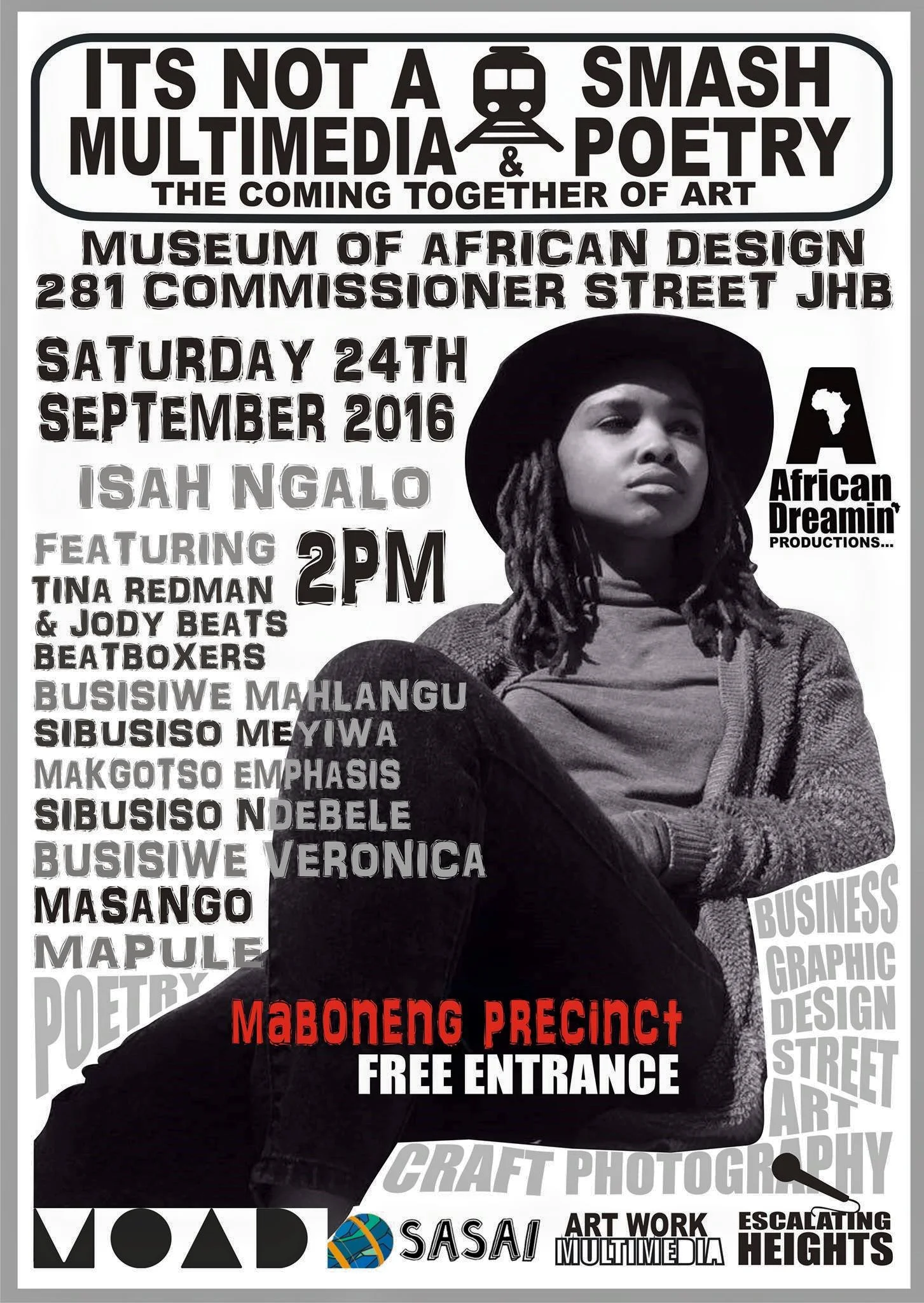 SASAI helps produce and fund the "It's Not a Train Smash" slam poetry series founded by African Dreamin' Productions and Escalating Heights Spoken Word Sessions. SASAI's involvement includes subsidizing space rental, funding the transportation of artists to and from the performance venue who otherwise would not be able to participate in the performance, providing the sound equipment and security.